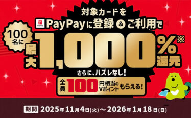 送金・クレカ・暗号資産三井住友カードをPayPayで使うと超お得なキャンペーン実施中!最大1,000%還元されるかも 三井住友カードをPayPayに登録して利用すると最大1,000%分が抽選で100名に還元されるお得なキャンペーン!抽選にはずれてももれなく100ポイント貰えてハズレなし!5000円利用で2.5%の高還元。このチャンスに三井住友カードを作ろう 2025.11.12知らないと損する話し送金・クレカ・暗号資産
