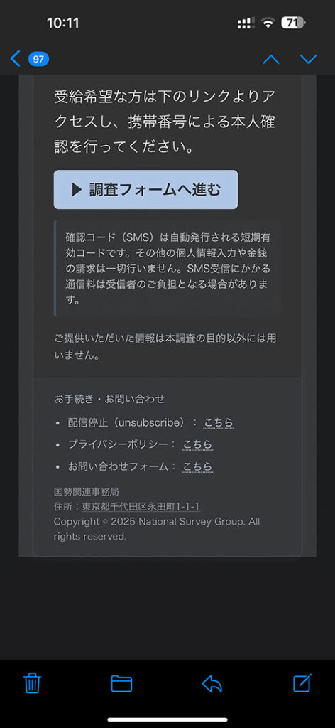 ①そもそも国勢調査の依頼はメールで来ない