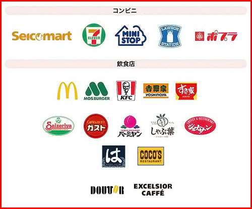 なんといっても、吉野家・すき家・マック・モス・KFC・ガスト・ジョナサン・サイゼリア・ココス・バーミヤン・ドトールといった、有名飲食チェーン店で最大20%(筆者は12%)還元が得られるので、ちょっとした飲食でお得になります。