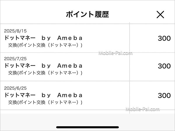 トリマは直接共通ポイントに交換するのではなく、「ドットマネー」を経由してポンタに交換しますが、だいたい月1回、300P(=300円分)を交換出来ています。