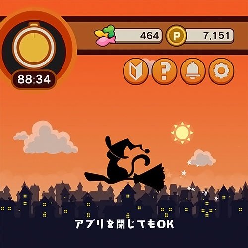 猫の魔法使いが「おつかい」に出かけて、放置している間にポイントが貯まる…というアプリです。まずは「おつかい」に出かけるためにCM動画を視聴する必要があります。出発時の動画視聴には何も報酬はありません。おつかいに出かけるだけです。