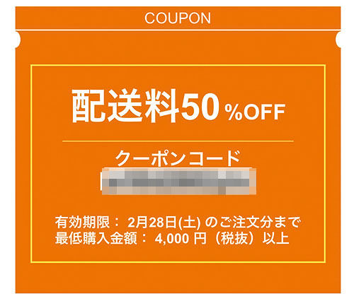 クーポンには配送料のクーポンも付きます。