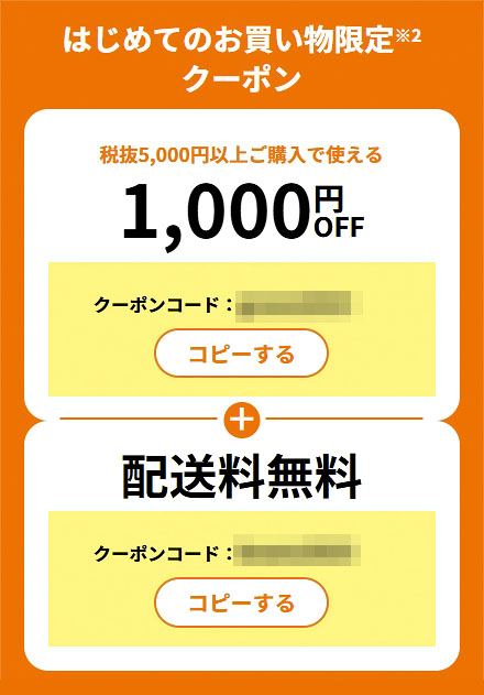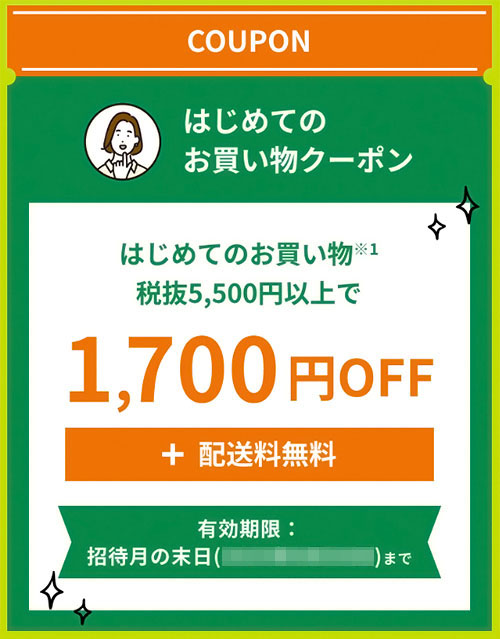 初回利用時の配送料が無料になるクーポンも付帯しています。