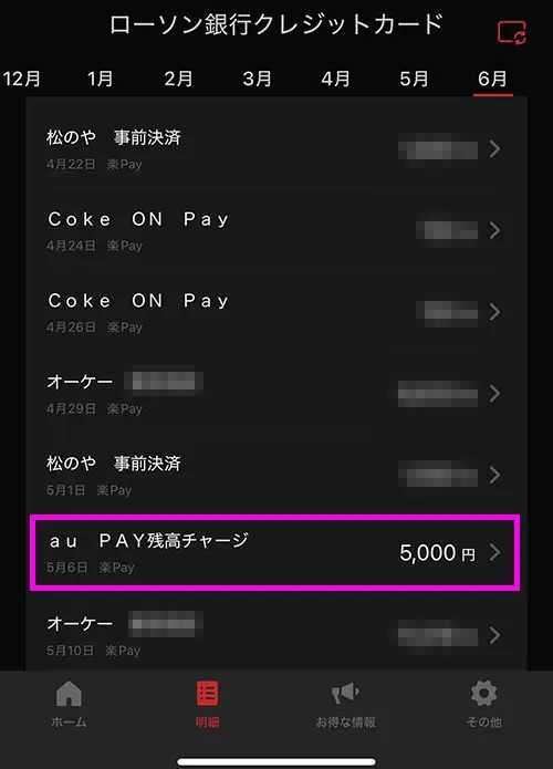 今回の利用額の中には、auPayへのチャージ5000円が含まれていましたが、
