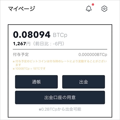 しかし、ここで大問題なのは、出金可能となるのが「0.2BTCp」からだという点です。