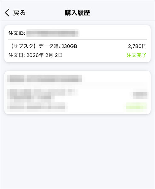2月分のデータ通信用に、2月2日にサブスクトッピングを購入しました(2/1は日曜日で必要なかった)。